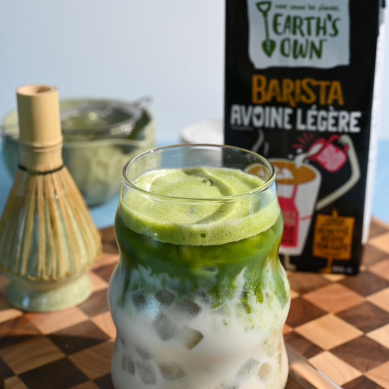 3. Versez lentement le matcha sur le Nog à l’avoine de Earth’s Own bien frais. Savourez !
